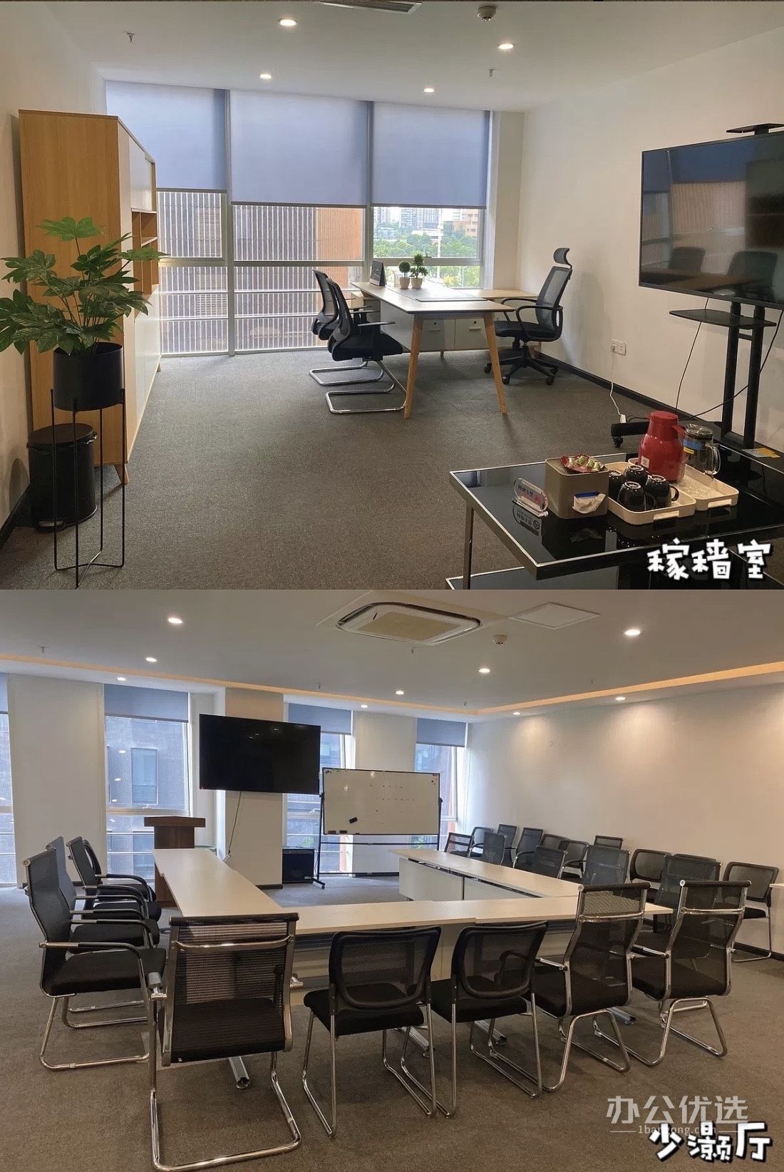 🔹 公共区域展示 我们的大厅、茶水区、文印区以及多风格的会客/会议室,都是您商务洽谈、团队协作的理想场所。