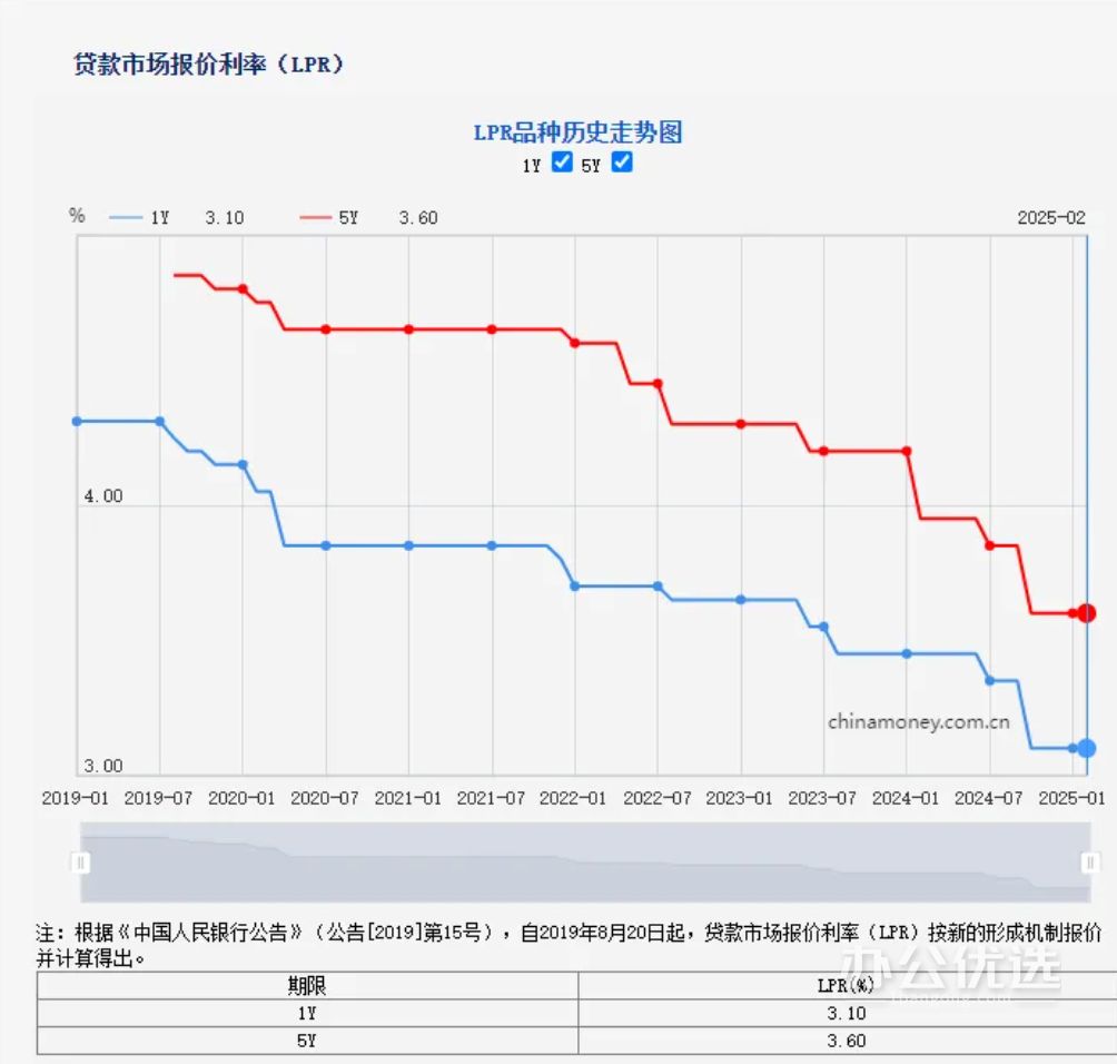 2025年2月20日贷款市场报价利率(LPR):1年期LPR为3.1%,5年期以上LPR为3.6%,以上LPR在下一次发布LPR之前有效。